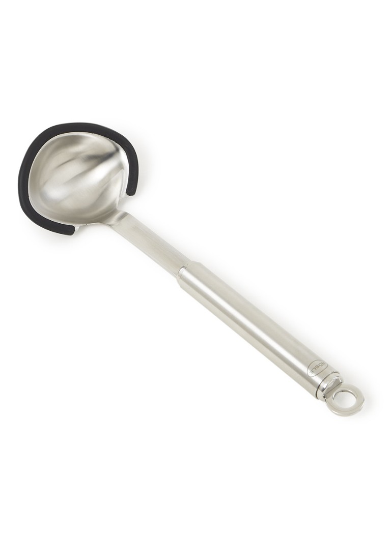 Sauslepel met siliconen rand van Rösle- De rand van de lepel heeft twee schenktuiten om snel en druppelvrij mee te schenken- De siliconen rand beschermt pannen met anti-kleeflaag- Hittebestendig tot 260 °C en vaatwasserveilig-.